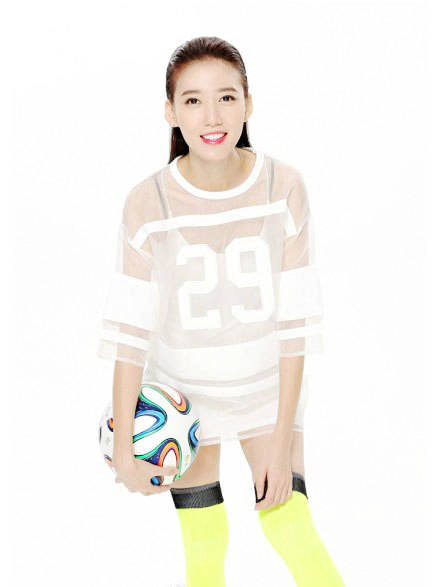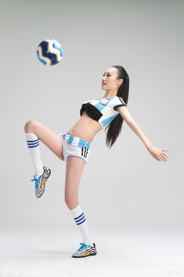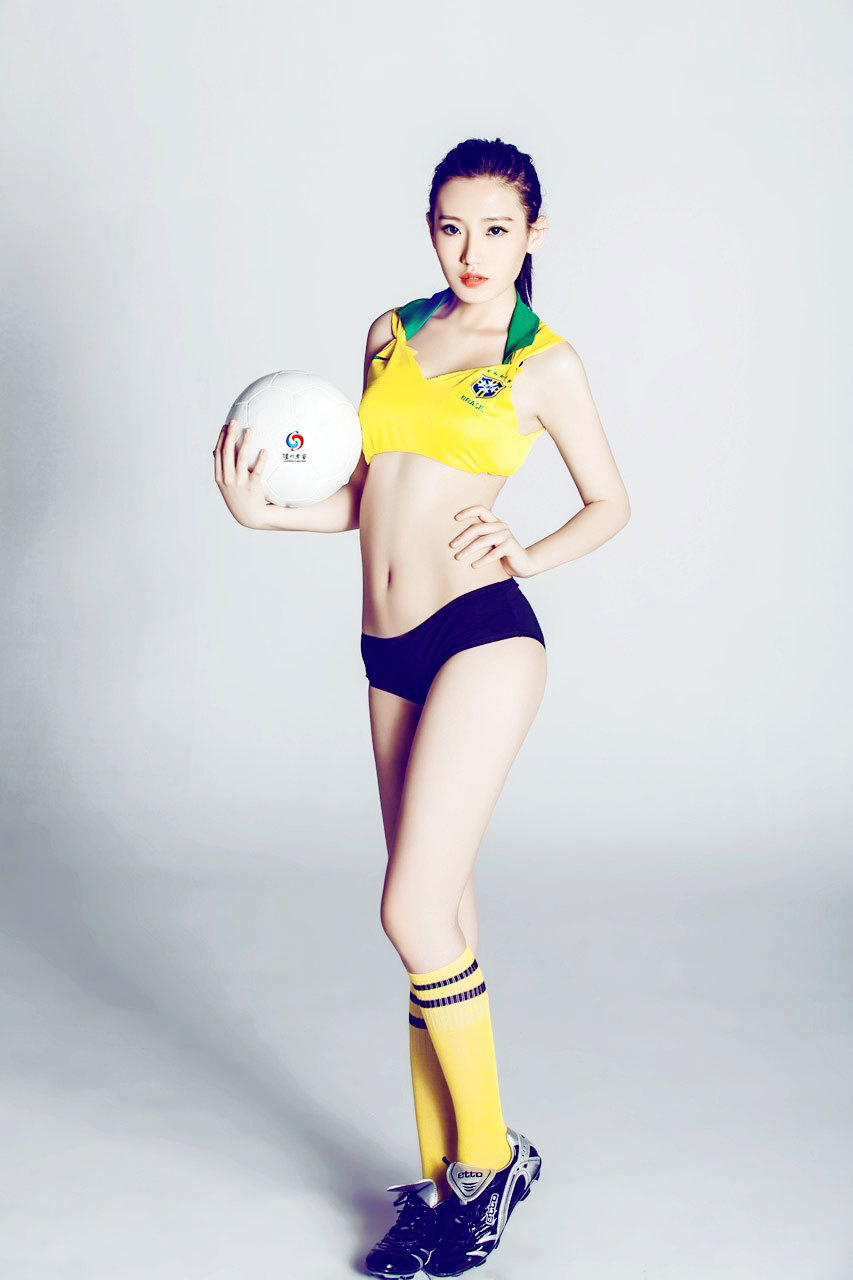 6月18日,美女演员高露拍足球主题写真为世界杯助威,女神范十足。